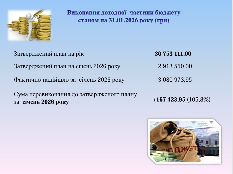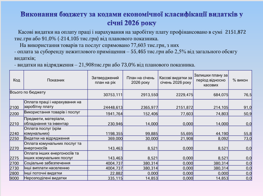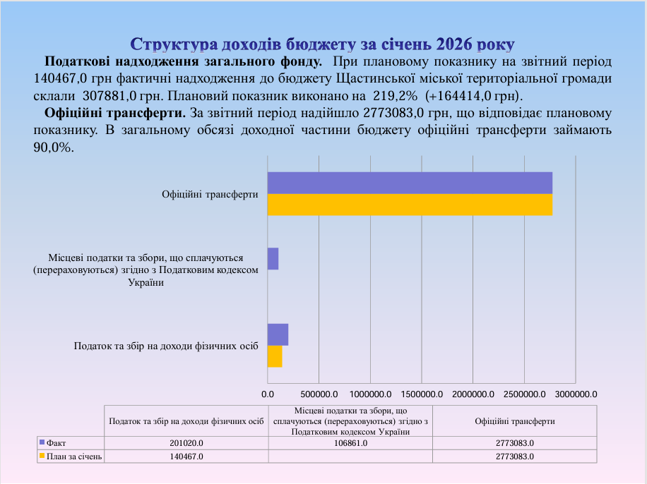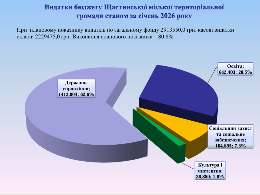 Виконання бюджету Щастинської міської територіальної громади станом на 31.01.2026року