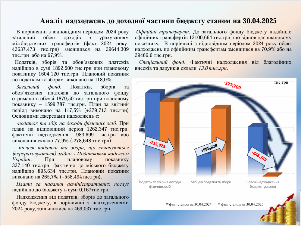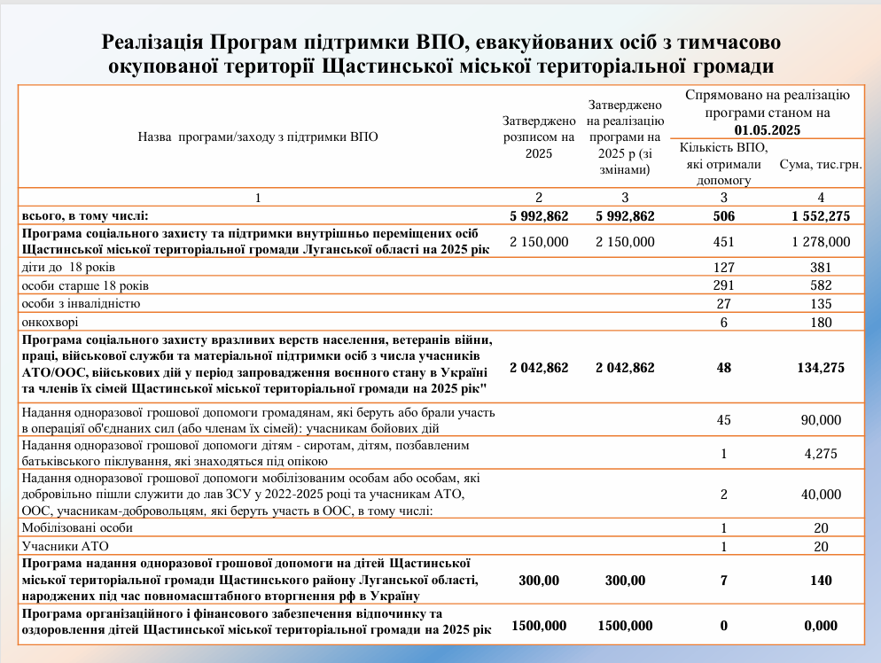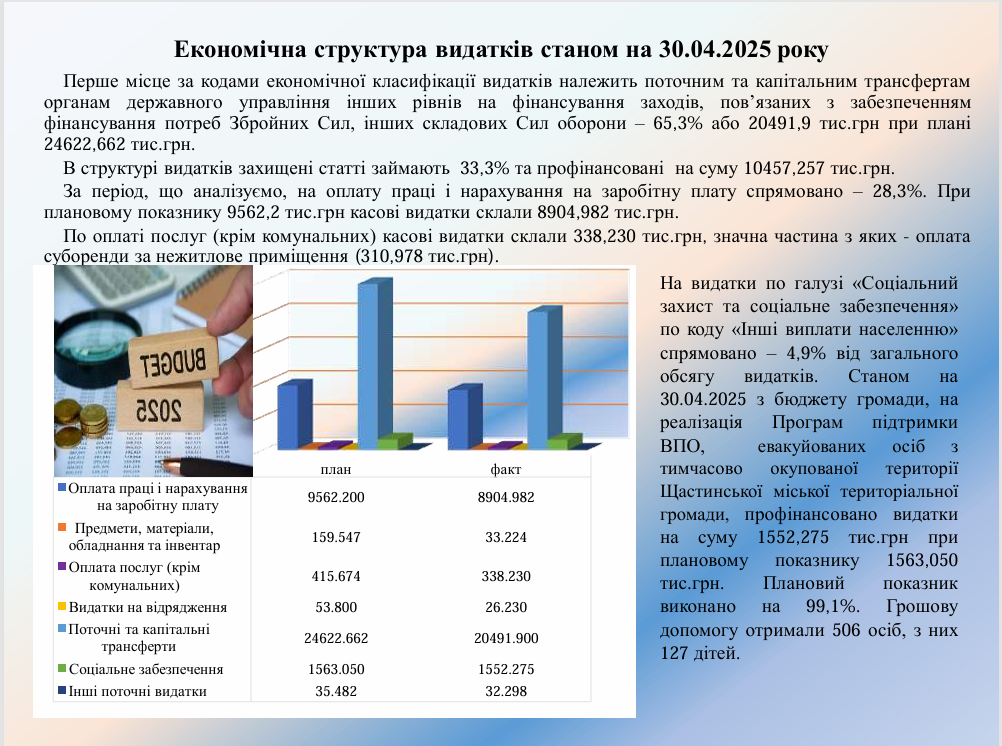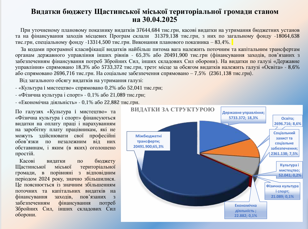 Виконання бюджету Щастинської міської територіальної громади станом на 30.04.2025 року